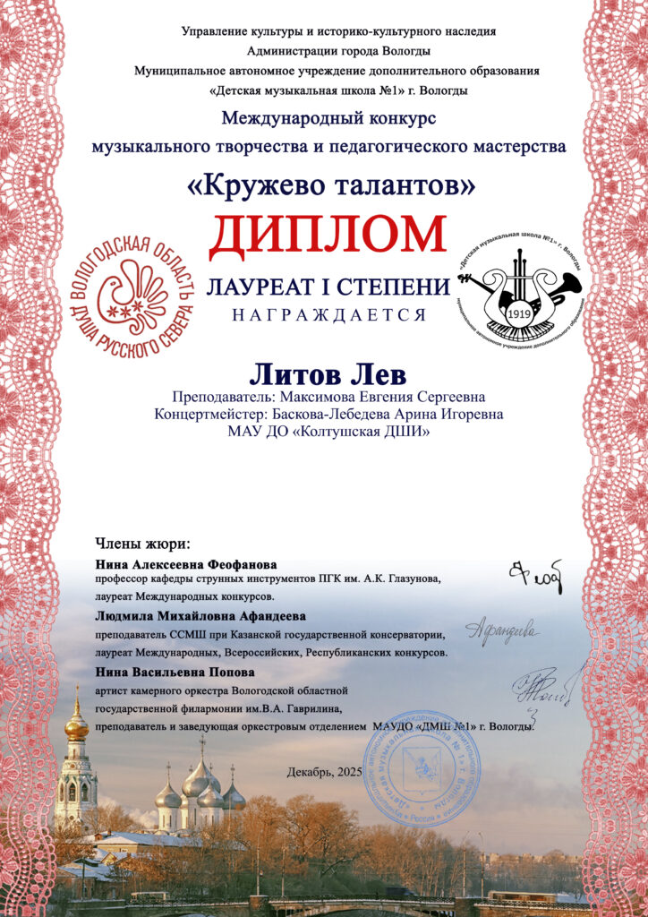 Лив Литов стал лауреатом 1 степени!