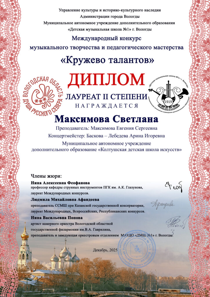Максимова Светлана- лауреат 2 степени!